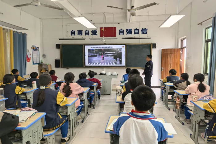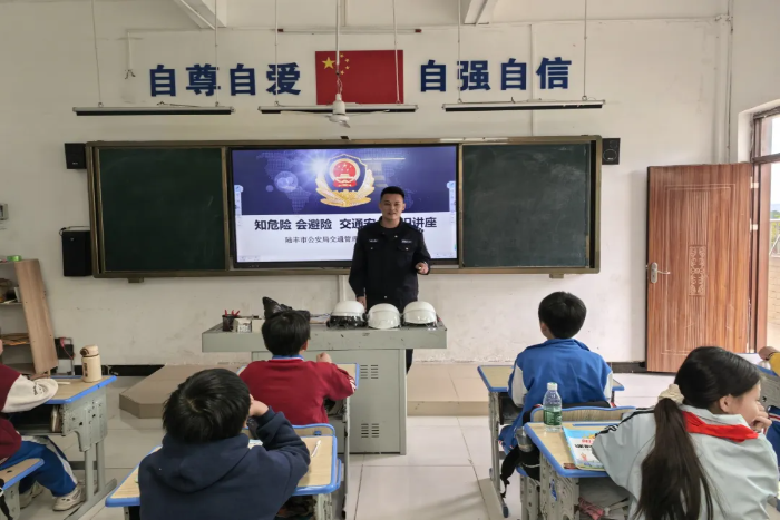 为做好秋冬季节道路交通安全宣传工作,市公安局交管支队结合道路交通安全季节性特点,把农村地区作为宣传重点,精心组织了一系列交通安全知识进农村、到田间地头、入乡村中小学学校主题宣传活动,有力有效提高农村地区“一老一少”群体的交通安全意识, 11月19日上午,陆丰大队组织宣教人员走进辖区内湖镇小坞村小坞小学开展了一场生动实用的交通安全宣讲活动。