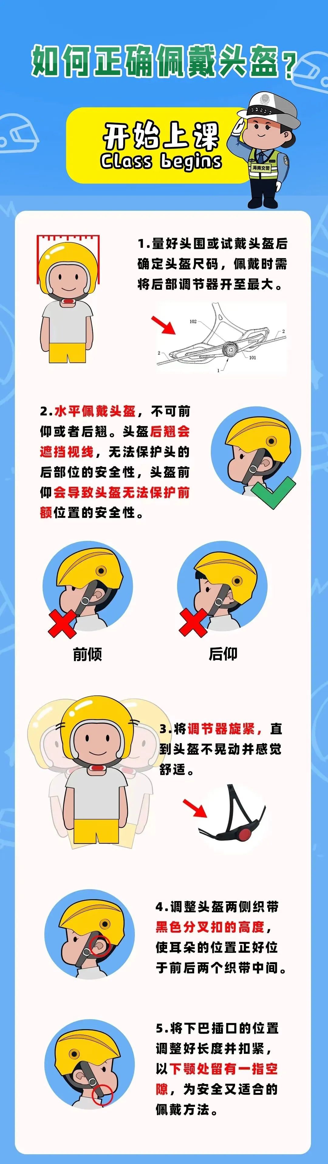 正确佩戴头盔的方式请收下