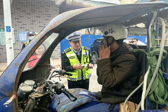 活动中,宣传人员在南联路口、新时代文明实践站、万家好等重要路口、路段设立劝导点,通过对未按规定佩戴安全头盔的摩托车、电动自行车骑乘人员进行拦截,结合典型事故案例,面对面地分析讲解事故成因,让群众深入了解头盔在关键时刻对生命安全的重要保护作用。同时,民辅警还通过分发宣传材料、发放安全头盔、示范安全头盔的正确佩戴方法等方式,引导大家树立“戴好头盔、安全出行”的安全防护意识,做到自觉预防事故,克服麻痹、侥幸心理,共同营造安全、文明、和谐的道路交通环境。