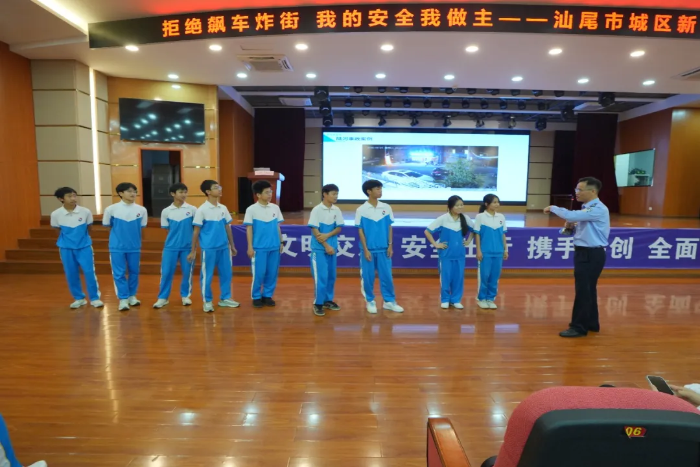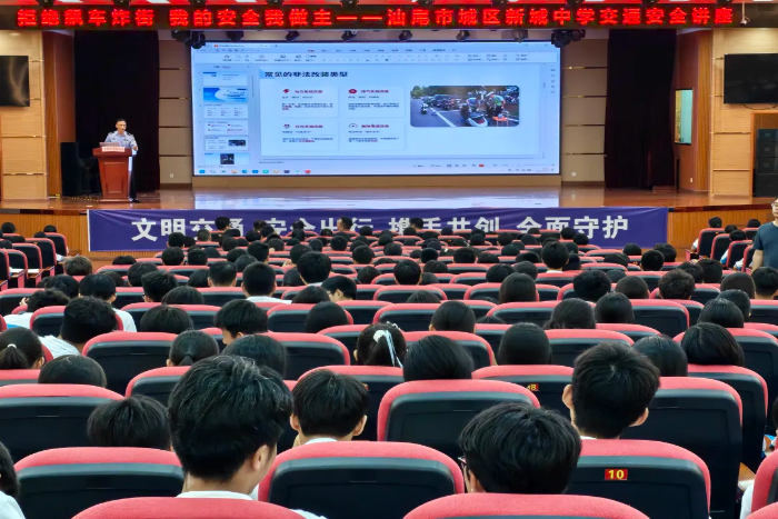 青春逐梦,安全先行。为进一步加强校园交通安全宣传教育工作,切实提升广大中学生交通安全意识和自我保护能力,4月21日上午,市公安局交管支队组织宣教警力走进城区新城中学,以 “拒绝飙车炸街·我的安全我做主” 为主题举行交通安全专题讲座。本次讲座聚焦青少年交通安全突出风险,着力引导学生“知危险 会避险”,拒绝“飙车炸街”违法行为,筑牢校园交通安全防线。