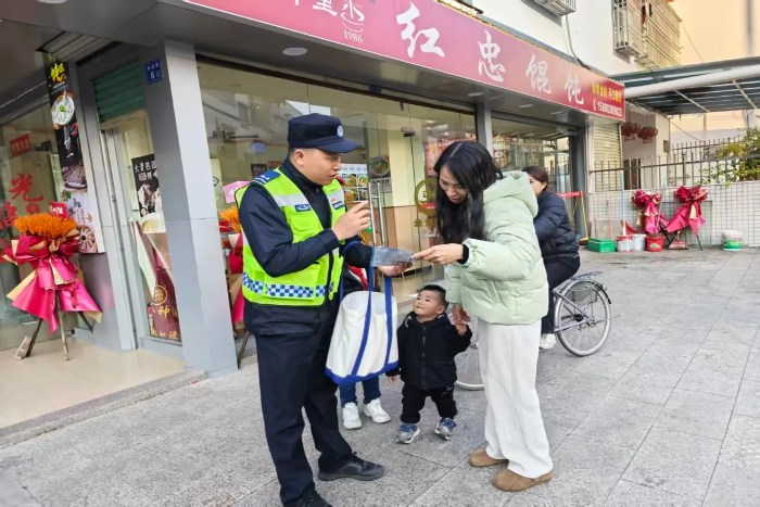 活动现场,民辅警走进社区沿街商铺,通过发放宣传手册、现场讲解等方式,结合商户和居民日常出行特点,用接地气的语言普及交通安全知识。针对老年人出行、家长接送学生、居民骑乘电动自行车摩托车出行等高频场景,民辅警重点强调 “一盔一带” 安全防护的重要性,深入解读不礼让行人、闯红灯、逆行、电动自行车违法载人、不按规定车道行驶等交通违法行为的严重危害,提醒大家日常出行做到 “早点走靠右行慢慢开” 的出行习惯。