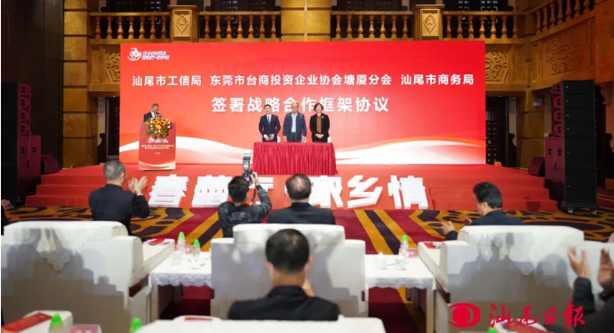 活动期间,市工信局、市商务局与东莞市汕尾商会、东莞市台商投资企业协会塘厦分会分别签署了战略合作框架协议。市工信局、市商务局、市农业农村局还分别带队前往东莞市塘厦镇、虎门镇、厚街镇开展产业强镇交流对接活动,学习东莞市镇(街道)在促进产业发展、招商引资、园区运营管理等方面的先进经验。