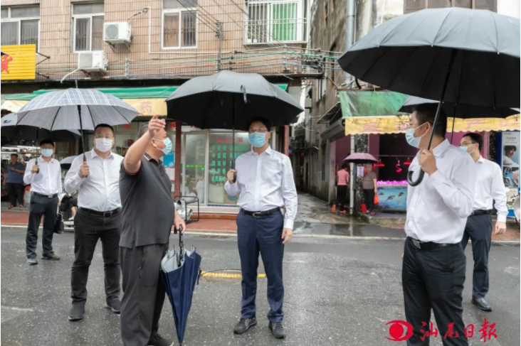 “水往哪里排?”“低洼易涝区有多少居民?”在海丰县海城镇南门社区、陆河县河田镇朝阳门市场等易涝点,张晓强实地察看易涝点位和社区内涝应急转移示意图,仔细检查排水沟渠、排涝设施、紧急避难点设置等。他强调,要做好内排水管网清疏工作,落实排涝设施,提高排水管网过水能力,确保雨水行泄畅通;要全面摸清低洼易涝区域人员情况,及时做好风险区域群众的转移安置及服务保障工作,统筹做好人员转移安置与疫情防控工作。