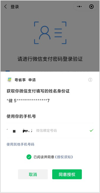 选择微信支付密码登录,点击同意事项,并点击“开始登录”。绑定手机号后,点击“同意授权”,进入下一步。输入微信支付密码,完成登录,如无法登录,请确认是否为本人登录及绑定本人的银行卡。