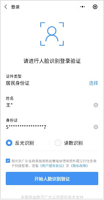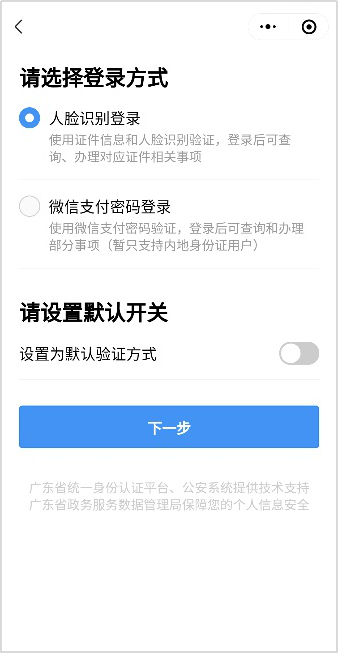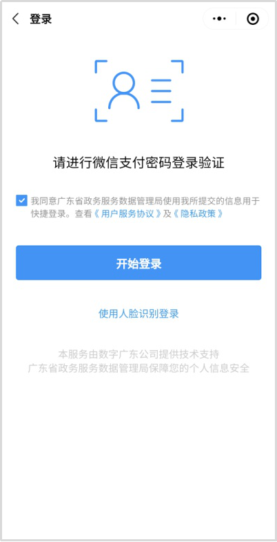 选择人脸登录,点击同意事项,并点击“开始登录”。点击下一步进行人脸识别,完成登录。
