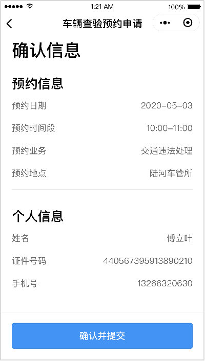 2.用户可预约七个工作日内的业务,同一车管所的同一个业务,一个身份证号只能一天内只能预约一次。