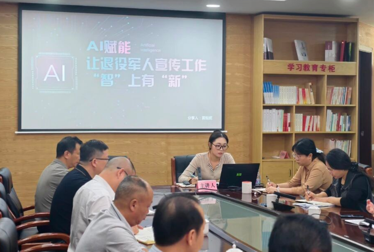 本次学习讲吧由参与宣传工作的同志主讲,她以《AI 赋能让退役军人宣传工作 “智” 上有 “新”》为题,从年轻人的视角出发,结合自身在工作中对 AI 技术的实践与思考,和大家分享如何用智能化手段激活退役军人宣传工作的新活力,分享怎样通过 AI 工具优化宣传内容创作、如何依托技术拓宽传播渠道,让退役军人工作既有 “传统味”,更添 “科技范”。
