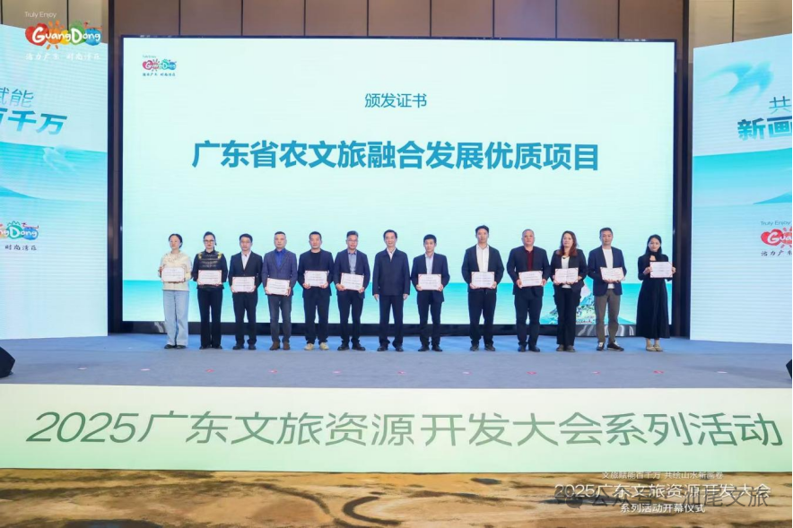 在大会现场,12个项目获颁“2025年广东省农文旅融合发展优质项目”荣誉证书。汕尾市“跳岛游+渔业”农文旅项目脱颖而出,成功入选,成为粤东地区农文旅融合发展的亮点之一。