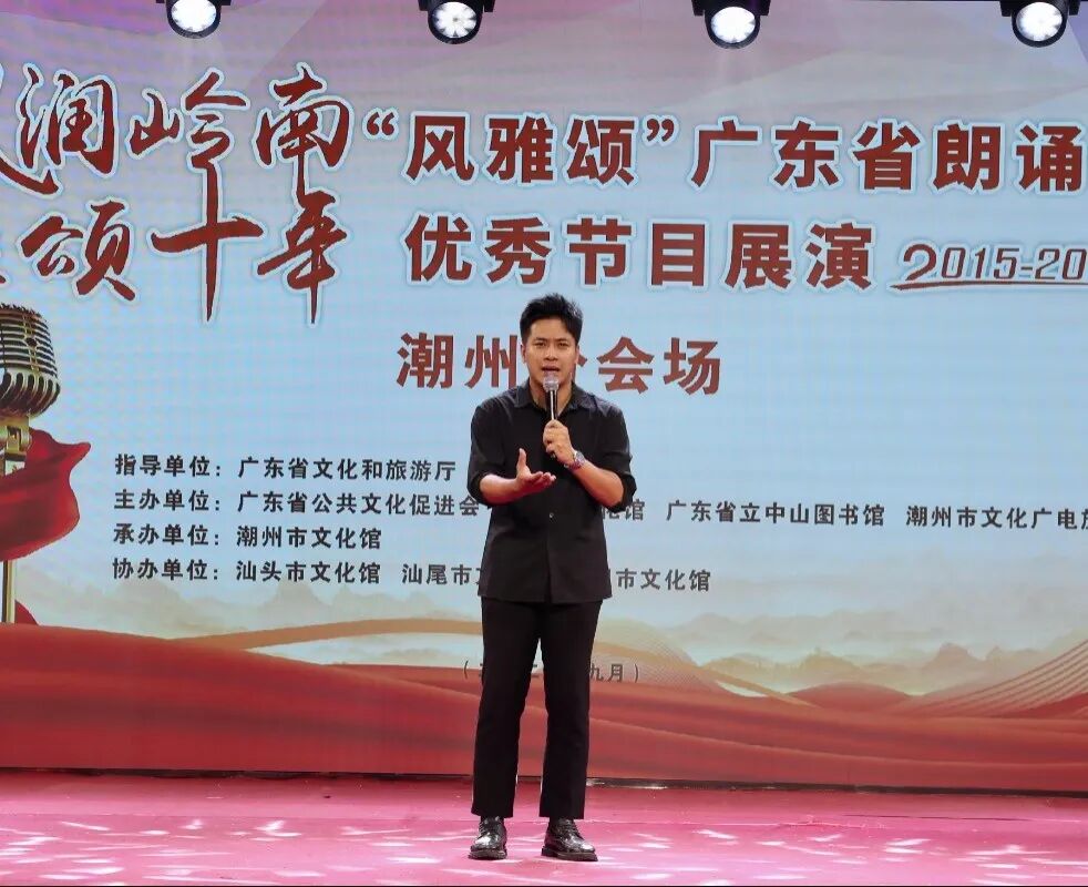 9月21日下午,由广东省文化和旅游厅指导,广东省公共文化促进会、广东省文化馆、广东省立中山图书馆、潮州市文化广电旅游体育局联合主办的2025“风雅颂”广东省朗诵大赛优秀节目展演(潮州分会场)在潮州市文化馆举行。本次活动汇聚来自汕头、汕尾、揭阳、潮州四市历届广东省朗诵大赛金奖得主及朗诵精英。