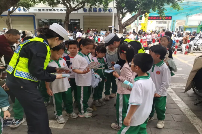 同时,民警利用家长等候接送的契机,积极向前来接送学生的家长及离校学生开展面对面宣传,发放交通安全资料,结合典型事故案例,深入浅出讲解摒弃交通陋习、遵守交通法规的重要性,倡导“早点走、靠右行、慢慢开”的安全出行理念,引导广大师生及家长树牢“安全第一”的理念,自觉做到文明安全出行。