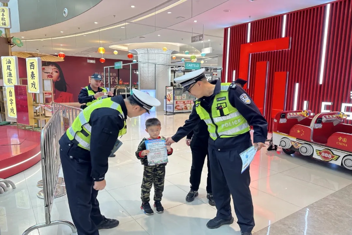 近日,针对春节临近人群密集场所,汕尾公安交管海丰大队、陆河大队组织民辅警走进辖区商场超市、社区商铺、花市等地,通过发放交通安全宣传手册、现场面对面讲解等方式,提醒广大群众,春节临近,车流、人流增加,交通事故风险隐患突出,大家要提高安全意识,出行要遵守信号灯、走斑马线,远离大型车辆盲区,非机动车不与机动车争道,教育儿童不要在马路上玩耍、追逐,乘车要使用安全座椅、系好安全带,并倡导家长履行好监护责任。同时,强调了“一盔一带”的重要性,提醒骑乘电动自行车、摩托车出行做到“早点走 靠右行 慢慢开”。