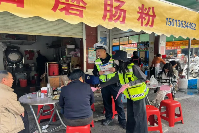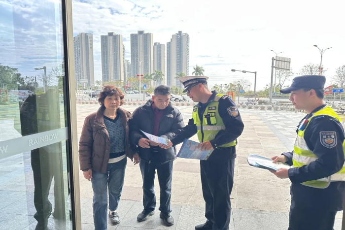 新春将至,年味渐浓。随着在外务工人员返乡、学生放假、群众探亲旅游客流集中,返乡车流、出行人流日益增多,为守护群众平安团圆,切实筑牢春运道路交通安全防线。连日来,汕尾公安交管部门组织民辅警深入社区居民、市井巷陌、商场超市、公司企业、夜市景点等场所,将交通安全叮嘱做到“入户上门”,为春运及春节期间道路交通安全保驾护航。