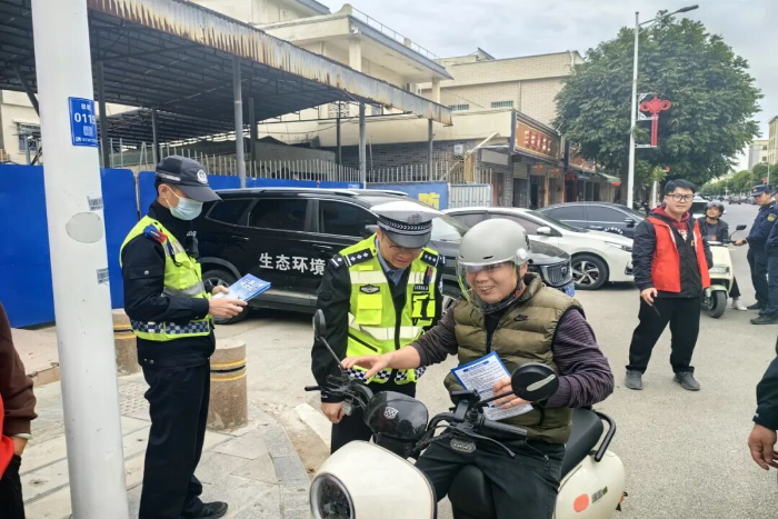 为进一步提高辖区摩托车、电动自行车骑乘人员安全防护水平,促使广大群众自觉遵守法律法规,避免和减少交通意外伤害,根据市公安局交管支队关于秋冬季交通安全管理工作部署,11月20日,红海湾大队联合田墘街道等单位在辖区开展“一盔一戴”交通安全集中宣传活动,全力守护人民群众交通安全。