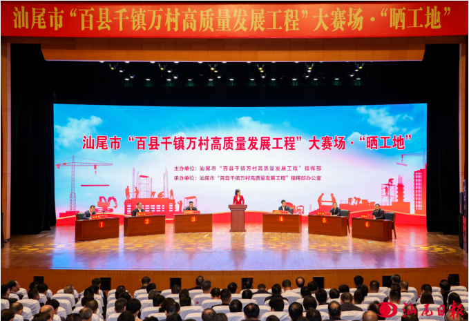 此次“晒工地”活动是我市“百千万工程”大赛场系列活动的第二场,旨在推动各县(市、区)以项目建设为重要抓手,增强县域高质量发展内生动力。活动现场,亮点纷呈、氛围热烈。各县(市、区)政府主要负责人轮番登台,聚焦年度目标、对标“晒账本”承诺,通过视频展示、演示汇报等方式,全方位展示重大基础设施、产业园区、美丽圩镇建设“七个一”等“百千万工程”项目建设进展情况。同时,活动通过现场答问、专家点评等环节,帮助各县(市、区)进一步找准差距不足,优化工作举措,提升推进工作的能力水平。经过三个多小时的激烈角逐,汇总市领导、专家、乡贤、企业家、人大代表、政协委员、市民群众等投票打分,最终海丰县一举夺魁,陆河县、陆丰市分获二三名。此次“晒工地”专场活动在网络平台同步现场直播,吸引近90万人次在线观看,营造了“奋战百千万,人人都是参与者”的浓厚氛围。