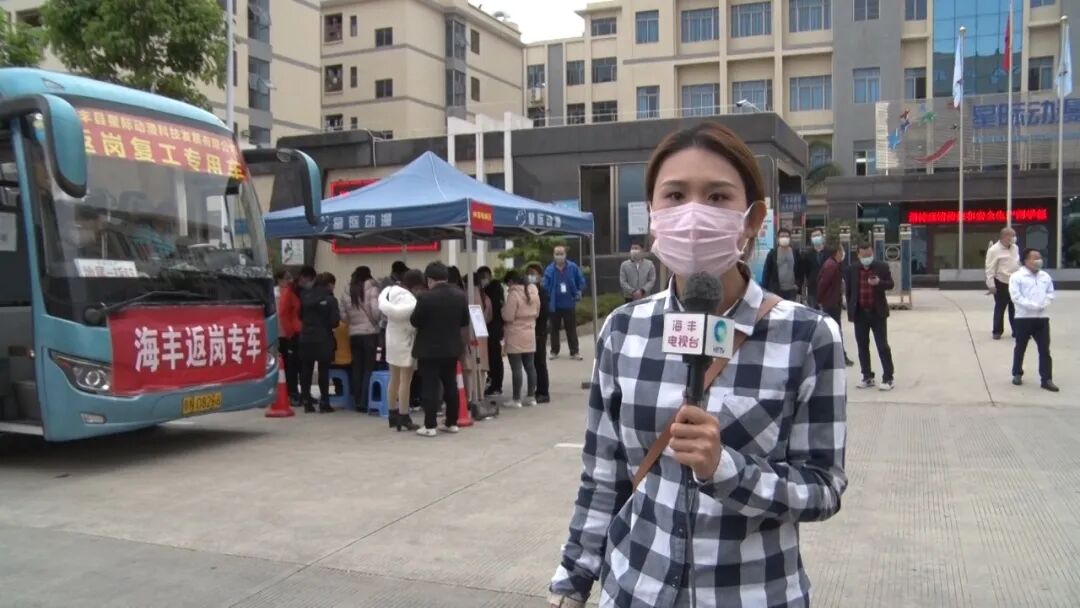 这次我们人社部门根据海丰县委县政府的部署,接员工回岗,回企业复工复产,点对点地把员工送到企业,让他们高高兴兴回来,所有的费用都是我们政府人社部门投入的。疫情对我们企业是有非常大的影响的,另一个是复工复产、人员这一块,但是通过海丰县委县政府、交通运输局、人社局的帮忙,安排了专车专列到达外省广西,接回我们的员工,在我们企业用工难(问题)起到很大的帮助,也能缓解我们企业对复产的帮助,可以顺利把订单交到客户的手上。