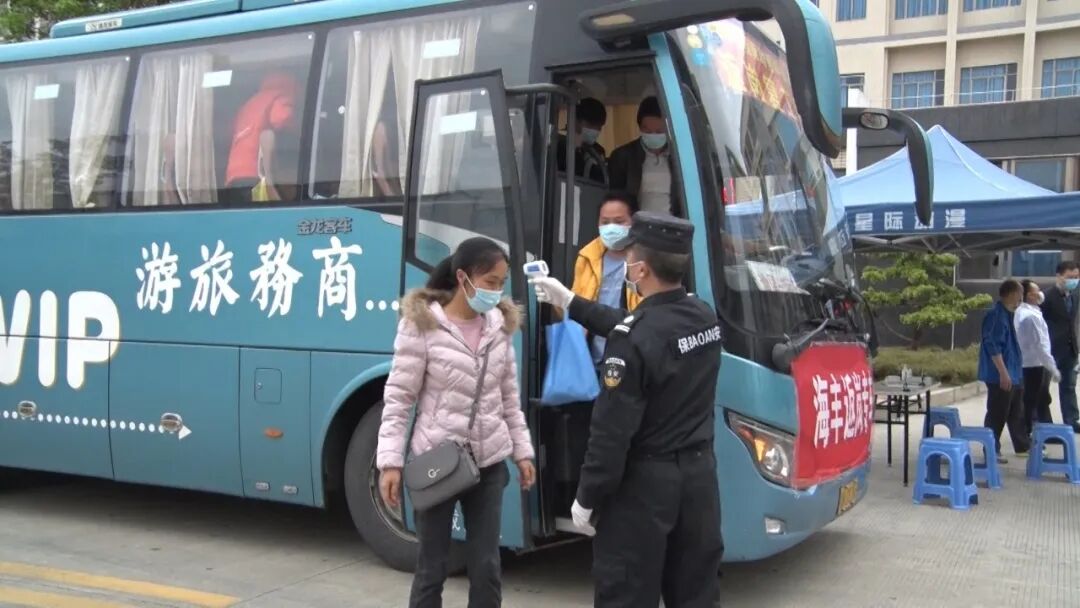 一路舟车劳顿,陆续下车的工友们虽戴着口罩,依然流露出笑意,从“家门口”直接送到“厂门口”,工友们纷纷点赞,直呼贴心!
