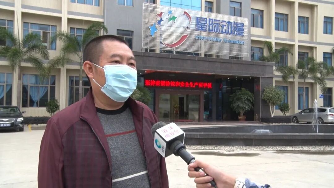 采访中,星际动漫生产部经理金冬苟告诉记者,“当前疫情防控依然不能松懈,必须确保疫情防控和复工复产两不误。”