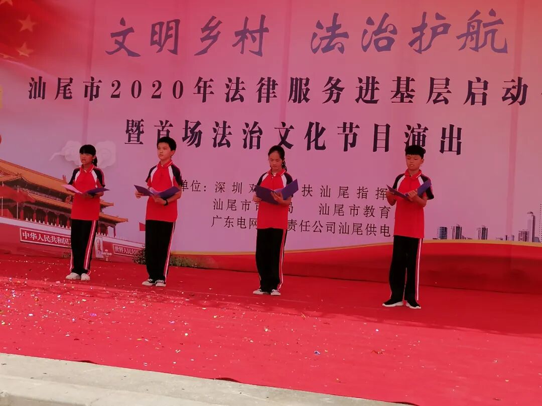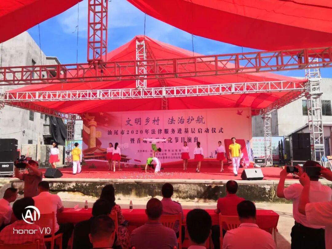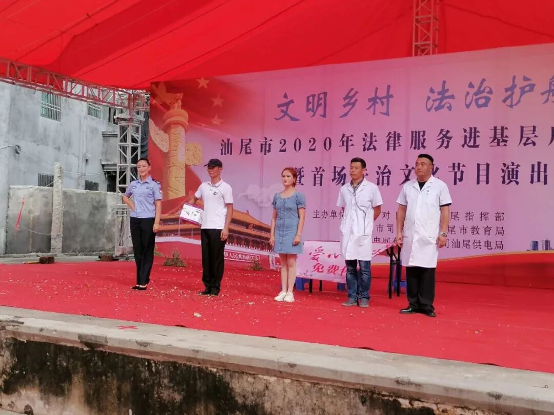 6月10日下午,汕尾市司法局联合深圳对口帮扶汕尾指挥部、汕尾市教育局、广东电网有限责任公司汕尾供电局主办的2020年法律服务进基层活动启动仪式暨首场法治文化节目演出在陆丰甲西镇西山村隆重举行,活动以“文明乡村·法治护航”为主题,为当地干部群众提供了一场休闲、学法、娱乐为一体的“法治文化大餐”。