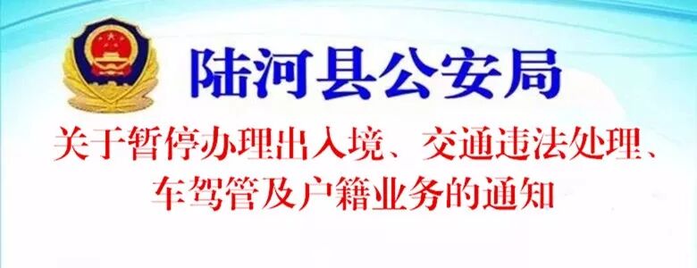 一、自2月3日起,县公安局办证大厅(出入境管理大队、治安大队户政中队)、交警大队和各派出所暂停办理出入境、交通违法处理、车驾管和户籍业务,恢复时间另行通知。