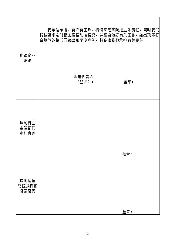 2.在2月9日24时后复工复产的企业,须在满足上述四项复复产件后,按照管理权限,在开工前须至少提前2日(自然日)经属地行业主管部门审核把关后,向属地疫情防控指挥部报备,并提交《汕尾市企业复工复产备案表》,经属地疫情防控指挥部同意后方可复工复产。