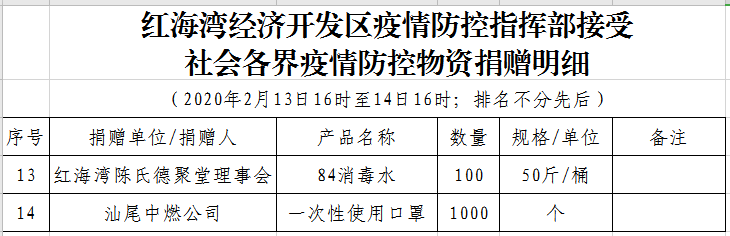 接收捐赠户名:广东汕尾红海湾经济开发区财政局