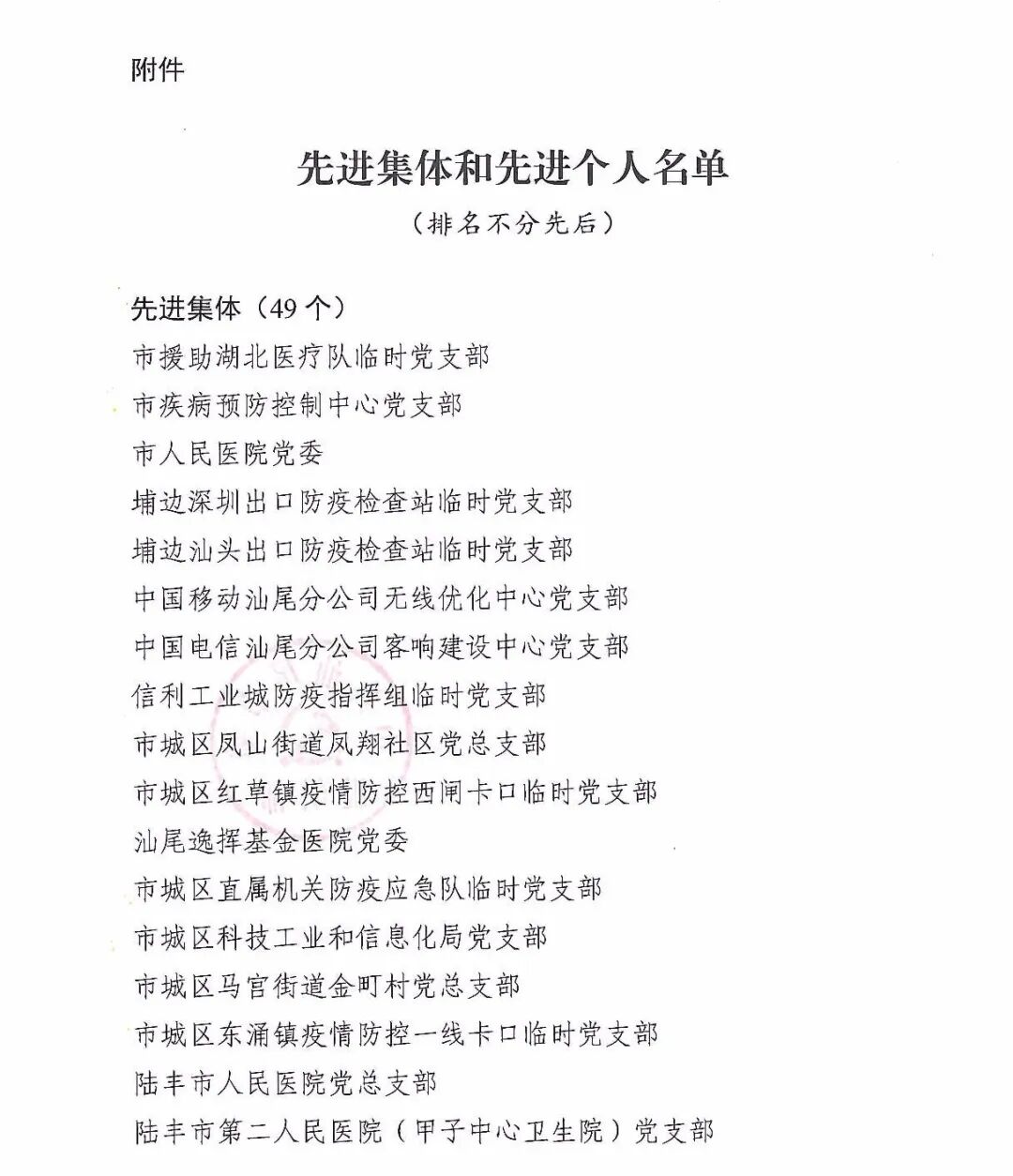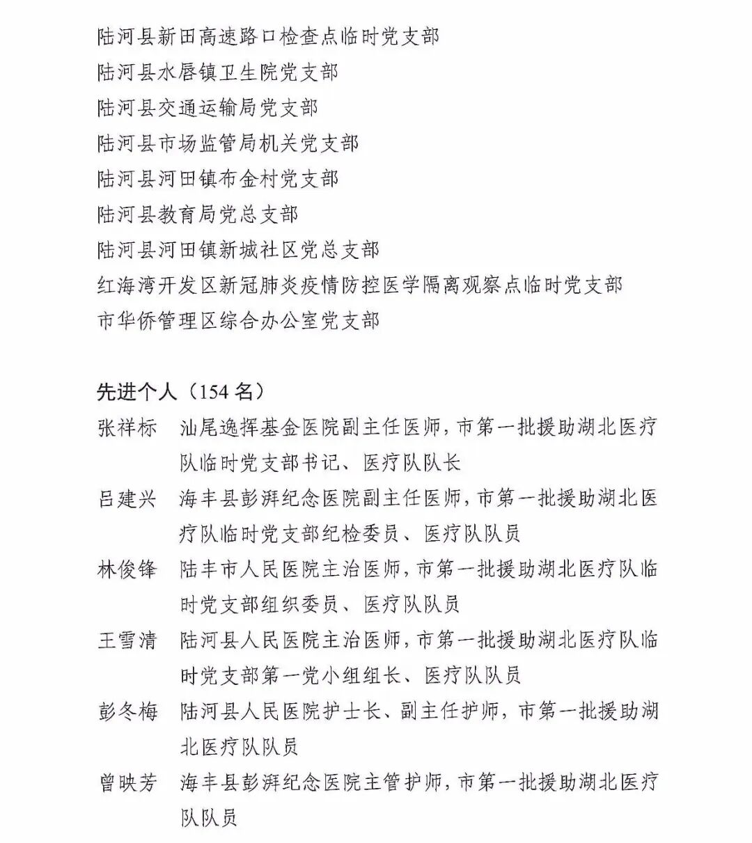 为激励先进、鼓舞干劲,进一步激发全市各级党组织和广大党员干部实干当先、奋勇争先,统筹做好疫情防控和经济社会发展,经市委同意,决定对在疫情防控工作中担当作为、表现突出的49个集体和154名个人(第一批)予以通报表扬。