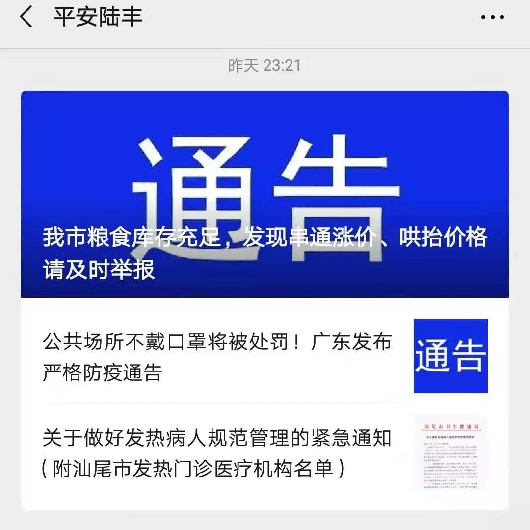 01 高度重视 认真部署落实 疫情就是命令,防控就是责任。大年初一、初二,陆丰市公安局连续两天召开紧急会议和党委扩大会议,制订疫情应急防控方案,再动员再部署,强调要以对人民群众生命安全高度负责的精神,履职尽责,要求全警取消春节假期,迅速采取一切有效措施,全力以赴投入到新型冠状病毒感染的肺炎疫情防控工作中,阻断疫情蔓延势头,维护社会平安稳定,确保人民群众生命安全和身体健康。 02 坚守在岗,确保平安稳定 针对春节人流密集及疫情形势,陆丰市公安机关加强一线执勤执法,对重点场所、重点路段和复杂部位加强巡逻防控,维护社会治安秩序,确保平安稳定。 03 严防死守,筑牢防疫墙 把严防疫情输入摆在首位,连日来,全警迅速行动、全力应对,坚持关口前移,全面实施交通检疫,全面强化公路、卡口、收费站查控勤务。全市设置7个卡口,联合有关部门,加强对出入车辆、人员的检查力度,从源头上防范输入风险,筑牢防疫墙。 04 一线巡防,阻断传播风险 积极响应上级和有关部门关于暂停文化活动、娱乐活动和宗教活动的要求,落实防护措施,降低传播风险。机关警力联合各派出所,对全市范围内各景区景点、游乐场所、娱乐场所、KTV、网吧等场所加强监管巡查;对宗教活动和民俗活动加强劝告宣传,并设岗值守,文明、有序劝导疏散群众,确保不出现群众聚集参与。 05 联防联控,加强源头排查 治安、交警部门和各派出所全面走访排查辖区酒店宾馆、旅社出租屋等重点场所,检查住宿登记人员特别武汉籍人员、从武汉返乡人员,以及湖北籍车辆等,做到“早发现、早诊断、早报告、早隔离、早治疗”;同时,协助有关部门加强对疑似病例密切接触者进行隔离观察,依法做好隔离提示和科普宣传。 06 打宣发力,增强社会信心 以刑警、经侦部门为主成立专门队伍,加强力度打击借疫情之机哄抬价格、囤积居奇、散布涨价谣言等扰乱市场秩序的违法犯罪行为。网警、派出所等部门加大力度打击涉疫情造谣传谣违法犯罪行为。宣传部门加强宣传引导工作,通过“平安陆丰”等公众号发布有关疫情防控常识,引导广大群众增强自我防护意识,做好自我防护;同时,加强网上舆情引导,主动及时发布信息回应社会关切,增强社会信心,赢得群众一致好评。