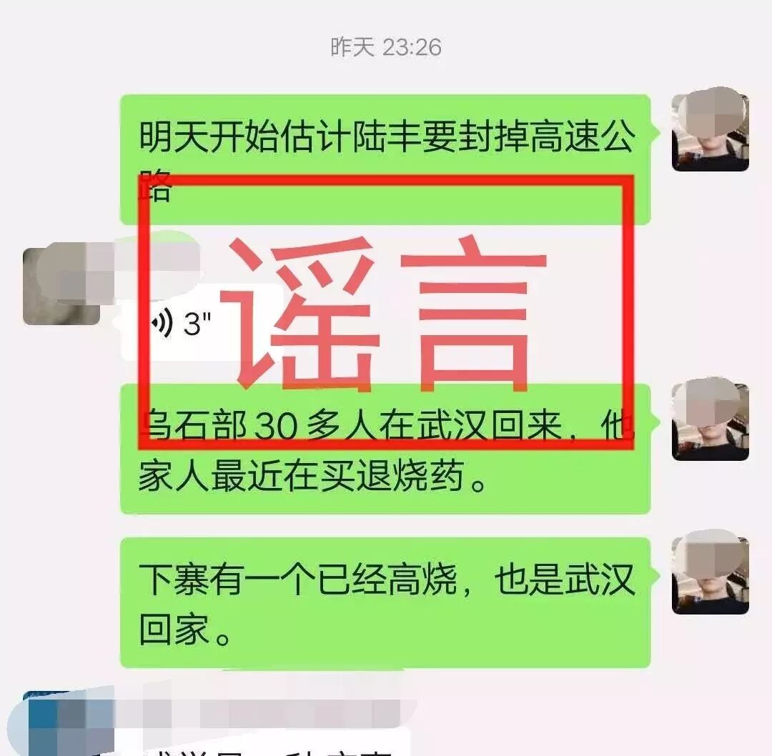 1月25日,陆丰网警部门在工作发现中,该市一微信网民在微信群聊天中发布“明天开始估计陆丰要封掉高速公路”“乌石部30多人在武汉回来,他家人最近在买退烧药”“下寨有一个已经高烧,也是武汉回家。”等言论。
