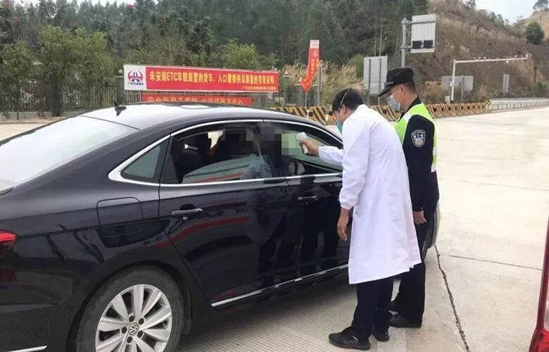 汕尾公安交警部门在高速公路进出路口设卡检查车辆人员,对外来车辆和外来人员进行体温监测,把好进入汕尾的第一道关!