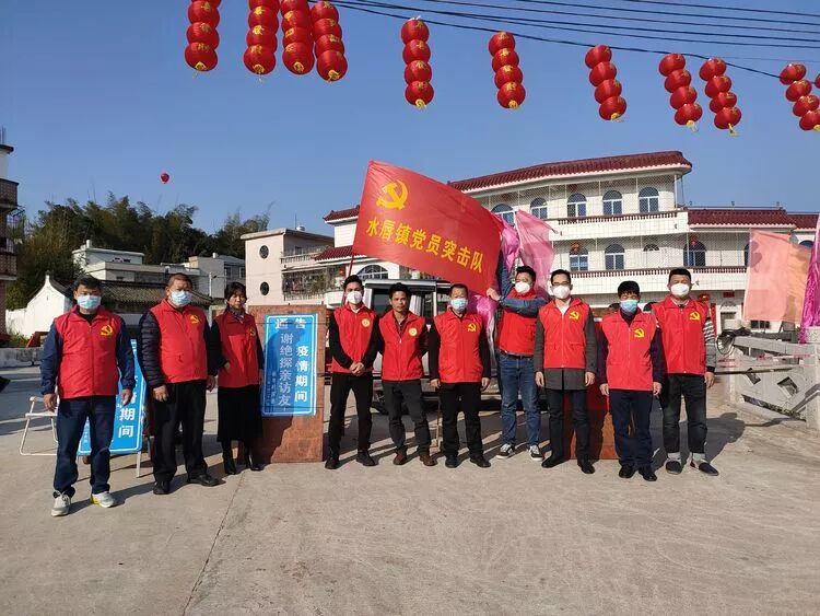 新型冠状病毒感染肺炎疫情发生以来,水唇镇党委按照上级统一部署认真落实各项防控工作,积极发动和组织党员干部群众冲锋在前,奋力投身疫情防控阻击战中。从设卡劝导到入户宣传,从签订党员承诺书到成立疫情防控党员突击队,防疫期间一名名共产党员挺身而出,一面面鲜红的党旗飘扬在防控疫情一线,不忘初心,挺身而出、冲锋在前。
