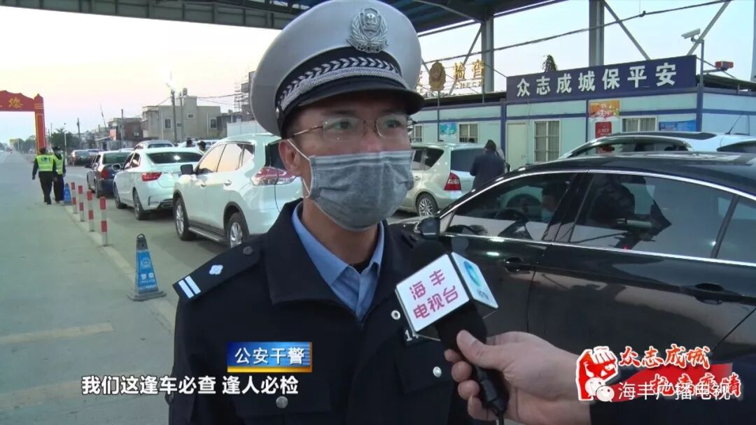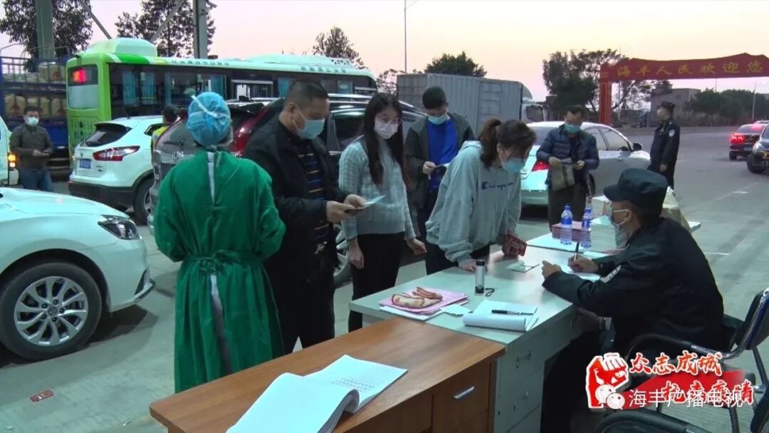 为防止输入性疫情,从除夕夜起,海丰县交警部门、卫生健康部门等日夜奋战在9个进入海丰的卡口,不畏寒冷、餐风饮露,共同筑起护卫海丰健康家园的铜墙铁壁。