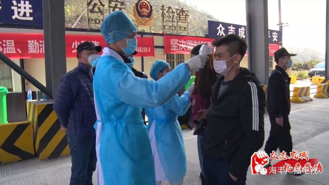 从除夕开始,海丰县公安在甬莞高速海丰东、西出口以及梅陇、可塘、公平、大湖等地共设置6个疫情监测卡点,为了进一步加强疫情防控工作,在1月31日晚起,又增设了附城西闸、陶河路口、平东与陆河交界处3个卡口。截至2月1日零时,9个卡点共排查人员约8.2万人,其中来自湖北的人员有82人,排查发现发热人员19人。