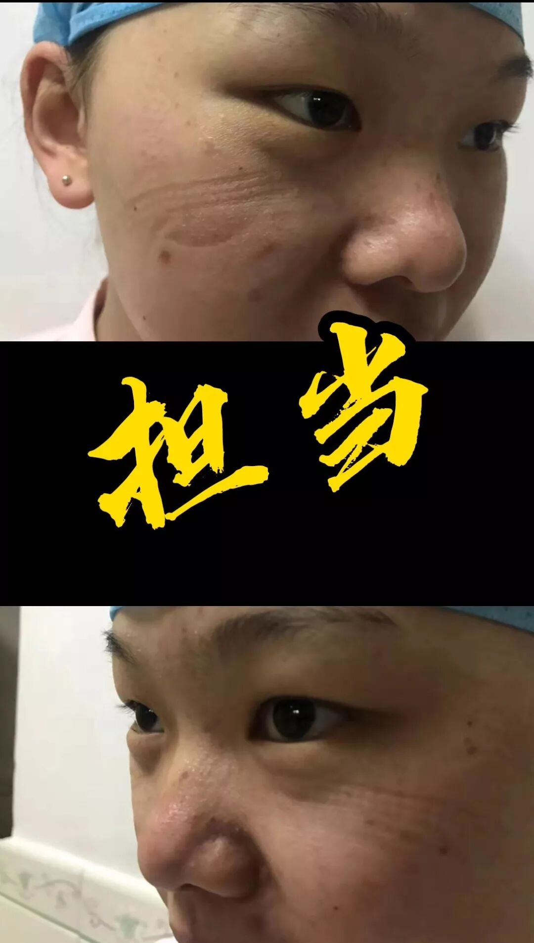 护士脸上留下深深的勒痕