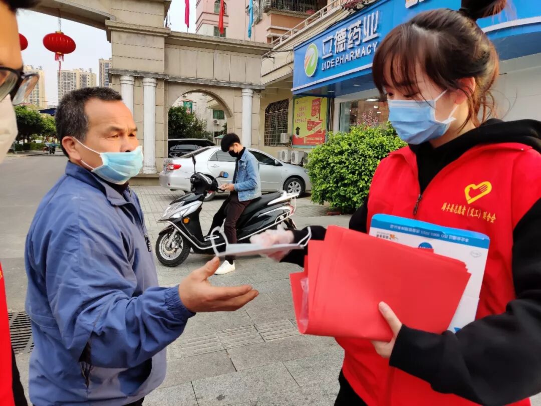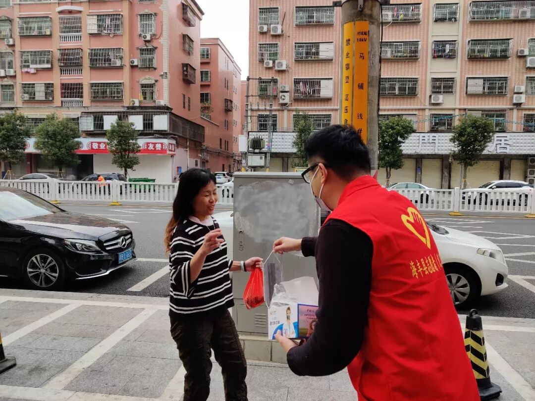 海丰志愿者走上街头向群众派发爱心口罩