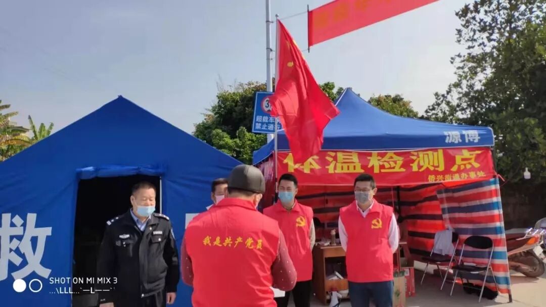 冲锋在前,凸显党员本色 一个支部就是一座堡垒,一个党员就是一面旗帜。为切实发挥党员干部先锋模范作用,当好带头站在疫情防控第一线、最前沿,当好疫情防控的“排头兵”,华侨管理区在全区四个联合检疫点成立临时党支部,让党旗在防控疫情斗争第一线高高飘扬。 严防死守,构筑铁壁铜墙 在市局党委和区委的坚强领导下,2月3日上午,华侨管理区四个联合检疫点临时党支部各召开第一次全体党员会议。各临时党支部书记强调,全体党员要拿出“跟我上”的率先示范,挑起“有我在”的责任担当,坚守岗位,严格把关、严防死守,在防控疫情战斗的前线接受考验、经受锻炼,坚决防止疫情输入,为侨区人民的生命健康而战,为侨区的未来而战。全体党员面向党旗宣誓,决心在上级党委、临时党支部的领导下,不负组织重托、恪尽职守、英勇奋斗,为全力打赢疫情防控阻击战不懈努力。