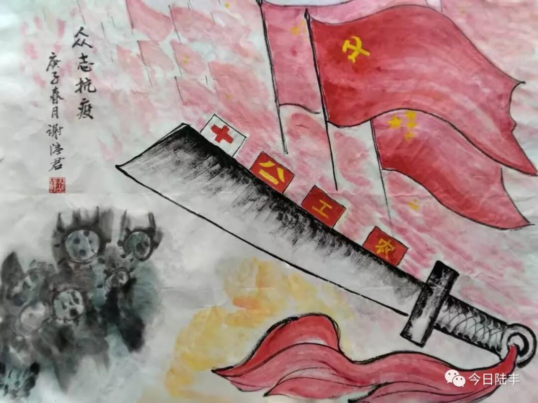 作品内容有的反应个人居家、防控生活画面,也有定格抗疫前线动人的时刻。陆丰市书画院将这些作品收集后由“今日陆丰”进行展示,旨在凝聚人心,增强信心,传递正能量,传播市委市政府关于防控工作精神和要求及疫情防控的科学方式。