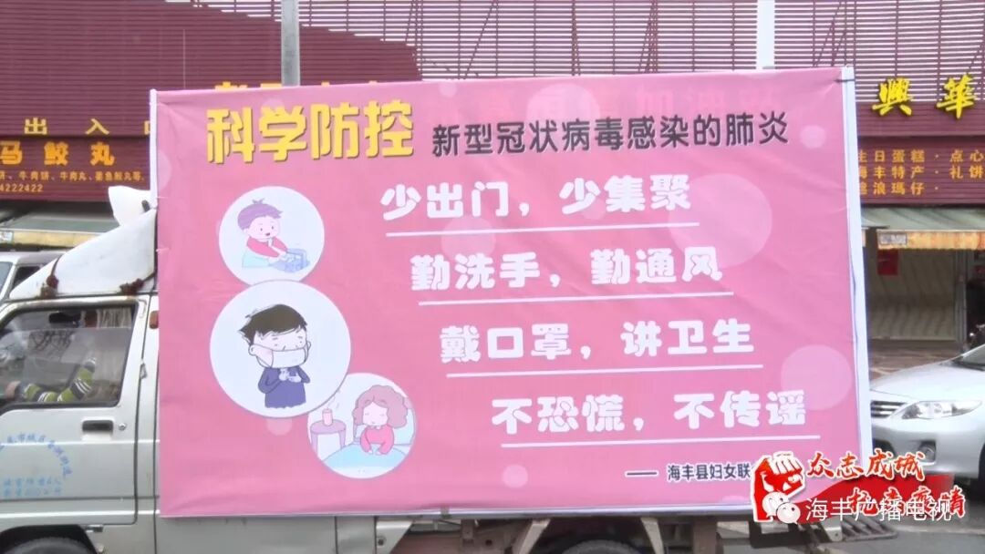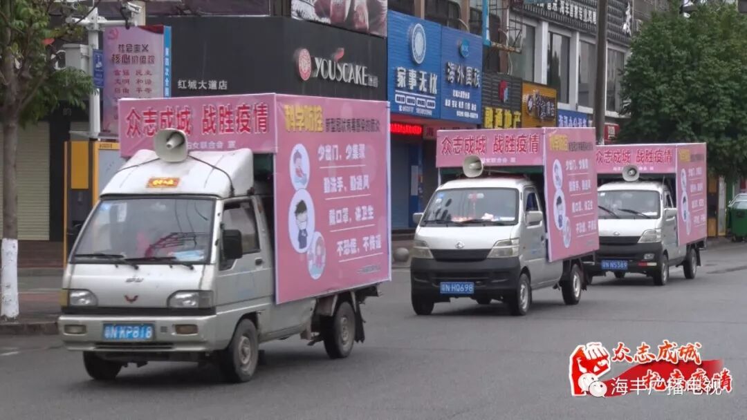 在县城红城大道、海丽大道等路段,县妇联宣传车驶进县城主干道、小区和楼房聚集区流动宣传。宣传车辆开启高音喇叭,播放“少出门、少集聚、勤洗手、戴口罩、不恐慌”等疫情防护知识,广泛宣传新型冠状病毒传播途径以及相关防护知识,提醒广大群众加强防护,确保健康安全。目前,新型冠状病毒感染的肺炎疫情牵动着全县人民的心,安全防护十分重要,做好防控知识宣传,普及疫情防控知识,提高群众防护意识,科学防控疫情。
