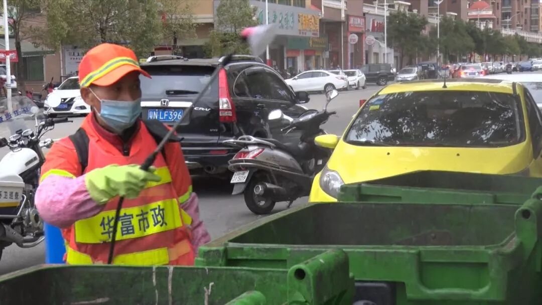 疫情期间,环卫工人加班加点,从早上五点开始一直要忙到晚上11点才能收工,保证负责路段卫生整洁,得到了市民的广泛好评。