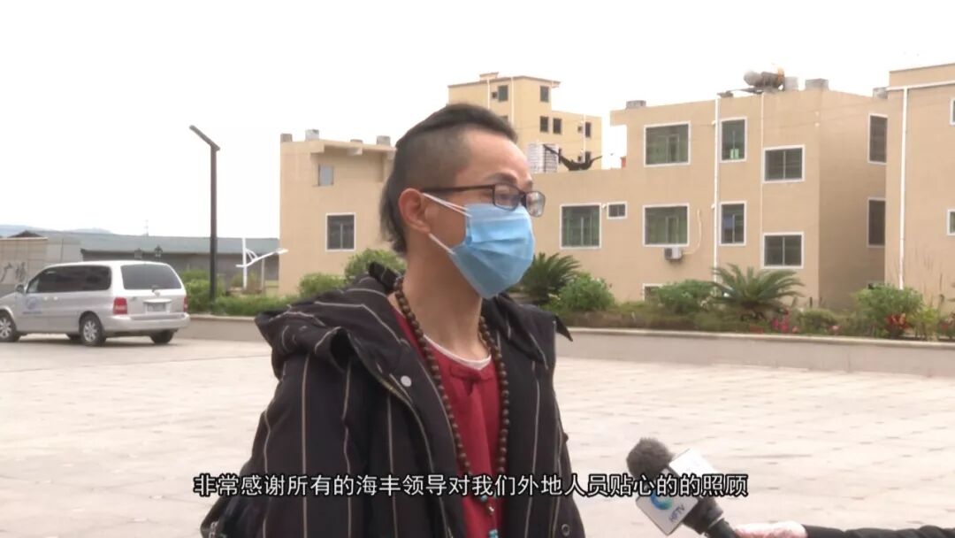 解除医学观察人员: 非常感谢海丰的领导对我们外地人员亲切的关心,刚来的时候,1月29日第一个晚上到第二天心里还是很忐忑,随着时间的推移和心理引导,其实我悄悄流下眼泪,工作人员很细心,所以我在这里很放心,在这里静静待着,什么也没想,只是感恩,谢谢!