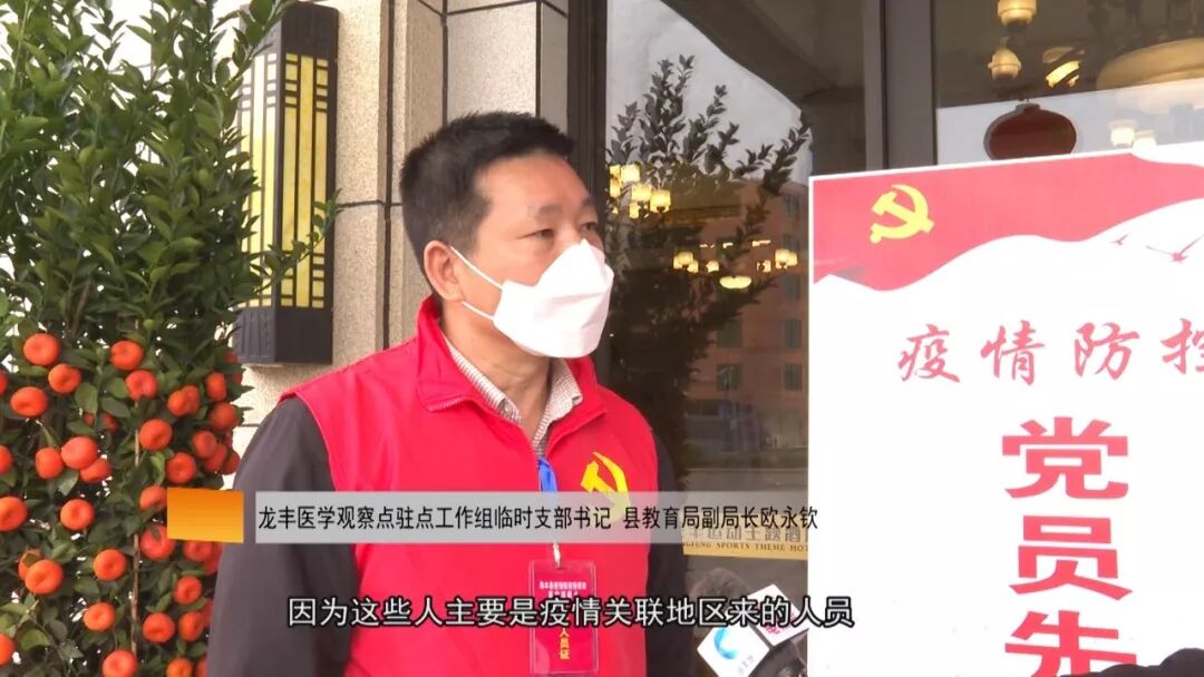 龙丰医学观察点驻点工作组临时支部书记、县教育局副局长欧永钦: 这个医学观察点是全县第一个启用,因为这些人主要是疫情关联地区的人员,对他们的医学观察是我们疫情防控的重点,做好他们的服务,确保他们在这里安心稳定下来,就是需要我们给予多一点的关心和爱护,下来还要继续为医学观察人员服务好,让他们健健康康。
