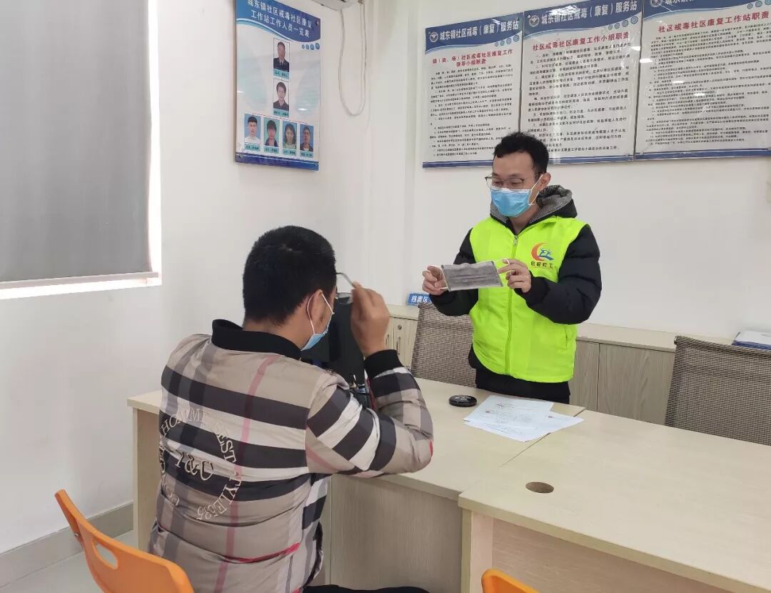 禁毒社工在开展“8·31”工程的日常尿检及访谈工作的过程中,积极向学员进行新型冠状病毒防护知识的宣传工作,做好心理预防及辅导工作并现场讲解口罩的正确使用方法和注意事项。