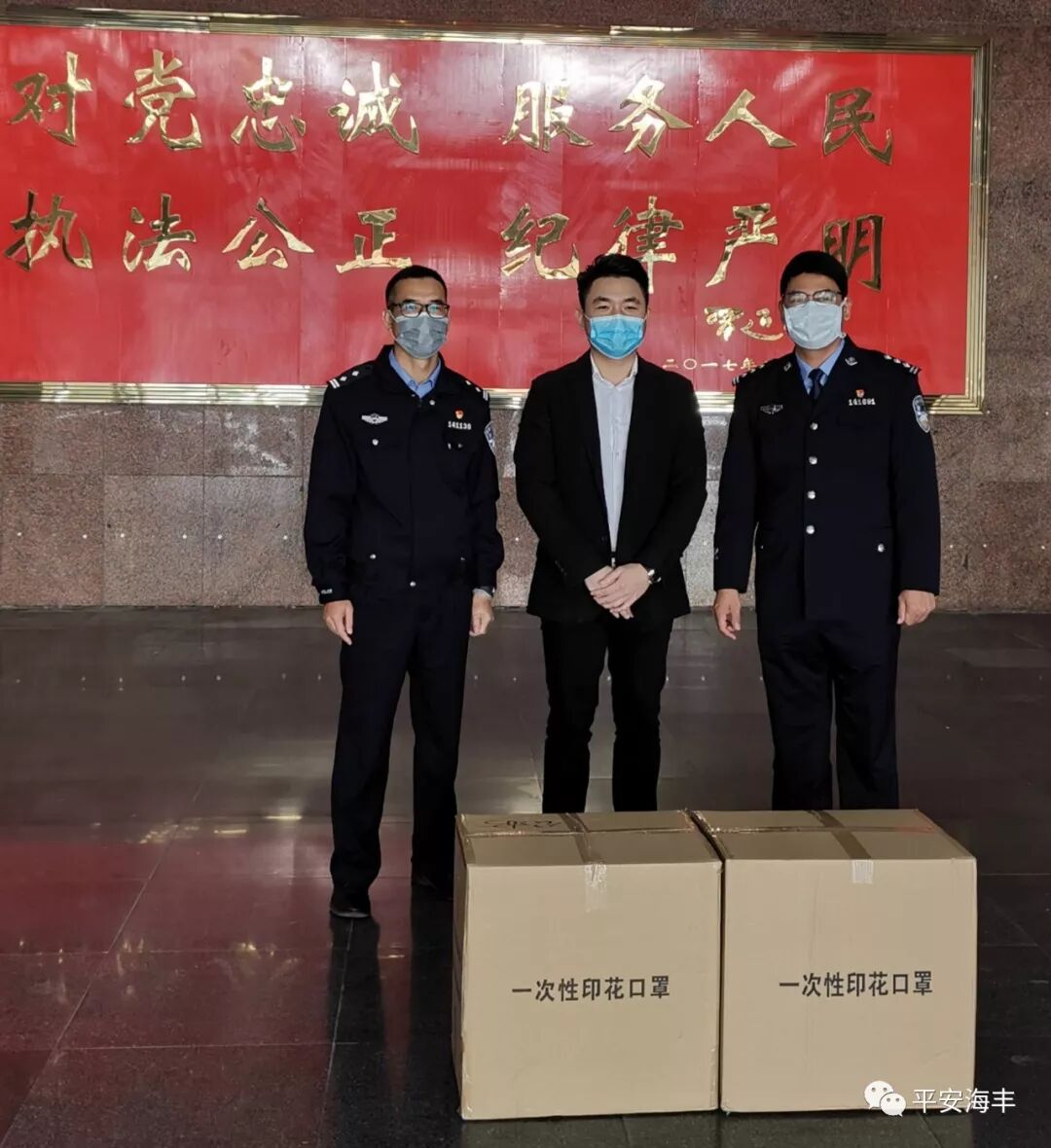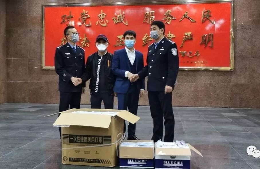 原来,这几位市民是来自北京凤归巢公益基金会的,因担心民警口罩不够用,特地从外地带回10000个口罩。在防护物资紧缺的情况下,几位市民的暖心之举,让在场民警备受感动。接过口罩的县公安局政委肖友育说:“感谢你们对海丰公安的支持,我们一定全力以赴,坚决打赢这场疫情阻击战。”