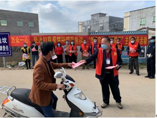 志愿者们分为两支队伍,村“两委”干部、村级妇联巾帼志愿者在进村路口疫情防控执勤点开展体温检测工作和进村车辆排查登记工作,守好进出口,把好疫情防控第一关。同时向过往的村民派发《绿色无毒健康人生》《致汕尾市民朋友的一封信》《防控新型冠状病毒感染健康教育知识》等防控新型冠状病毒感染等宣传资料。