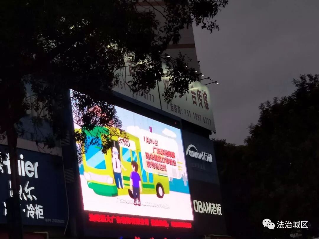 法治公园LED屏及时播放省司法厅《关于遵守疫情防控有关法律规定的通告》。