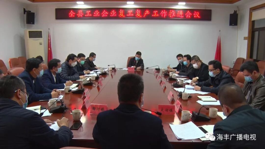 海丰县副县长吴光群在会上要求各地各部门要统筹做好疫情防控和经济发展工作,落实行业主管部门的监管责任,各镇场、开发区的属地责任,各工业企业疫情防控的主体责任,实行一地一策,一企一策,严格按照“海丰县企业复工复产工作方案”进行复工复产。各企业要对每一名返工人员进行筛查隔离,每日进行体温探测,同时做好场地通风、消毒和卫生管理,做到错峰上班,不聚集用餐等。县各有关部门要加强督查巡查,对不符合复工复产条件的企业予以关停,督促符合条件的工业企业有序复工复产。