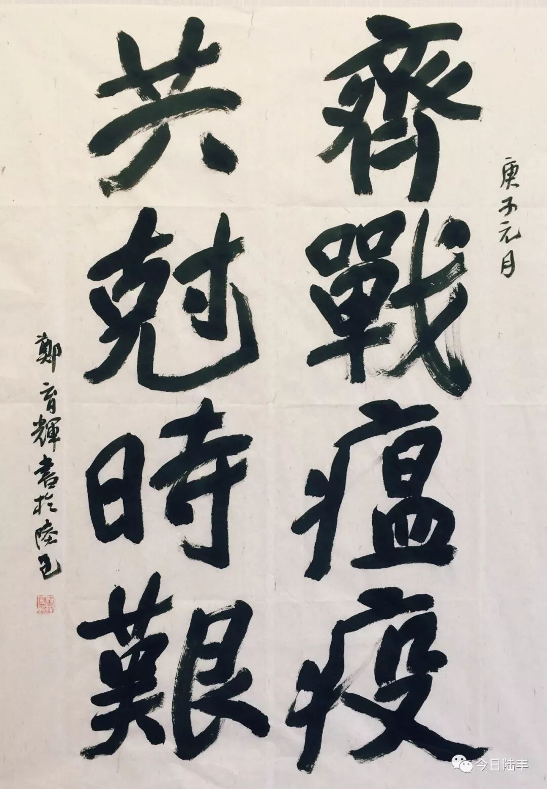 新型冠状病毒感染的肺炎疫情牵动着无数人的心,在这场没有硝烟的斗争中,医护人员、公安民警、各级党员干部冲在一线守护着大家的健康。在全国上下团结一心抗击疫情的当下,市委宣传部号召全市书法爱好者迅速行动起来,创作一批鼓舞群众、凝集人心、提振信心的书法作品,为全市人民抗击疫情助力加油。我市中书协会员郑育辉先生积极行动起来,创作了一批反映人民群众万众一心、众志成城抗击疫情的书法作品,传播正能量、讴歌真英雄,增强人们战胜疫情的信心。