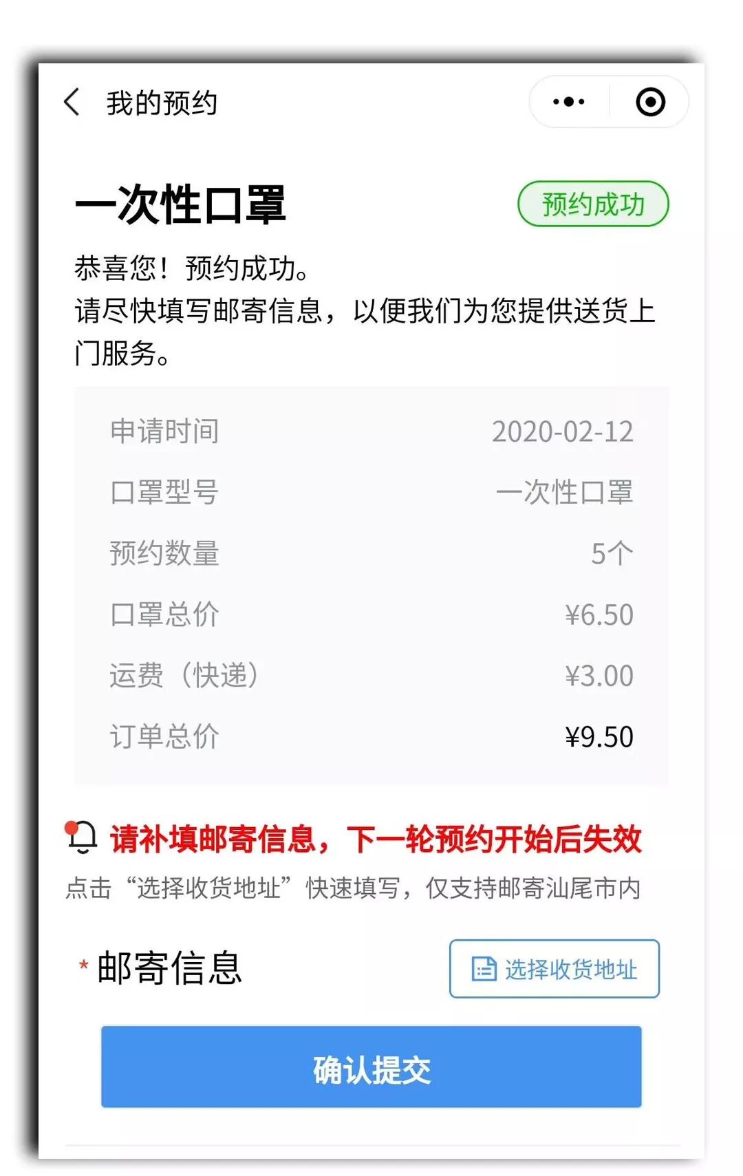市邮政局有关负责人告诉记者,凡预约成功的市民,邮政汕尾分公司第二天将会把口罩送上门,凡汕尾市辖区范围内,含县(市、区)镇村都会送到。