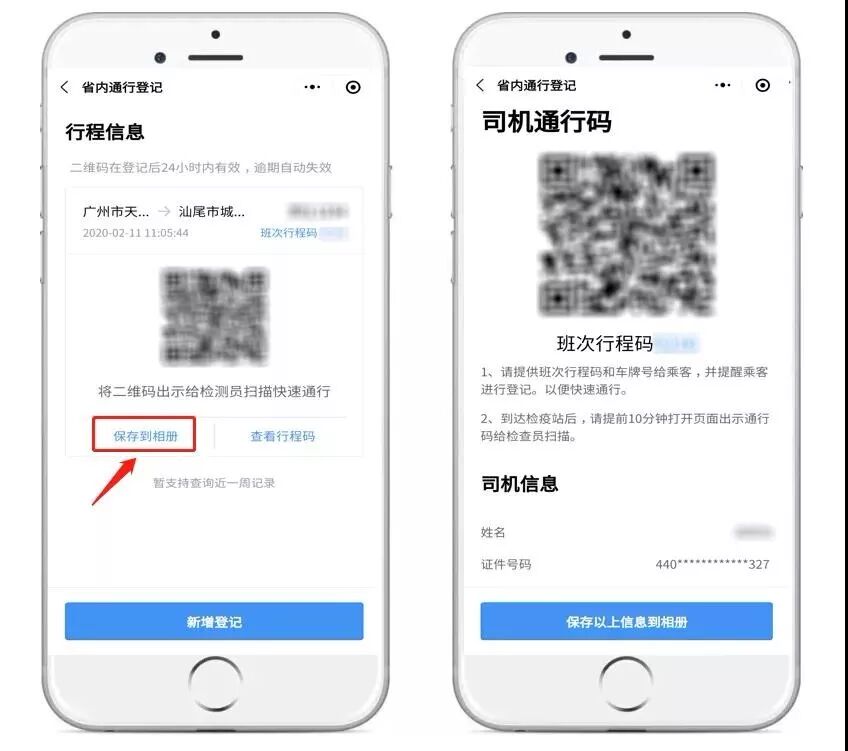 驾驶员及所有乘客在“粤省事——疫情防控服务专区——省内通行登记(汕尾试点)” 入口,即可出示对应二维码,点击“查看详情”,可查询该条记录详情信息;检查员扫描司机的二维码核验即可带出全车人员登记信息,然后测量体温、提交信息后通过。