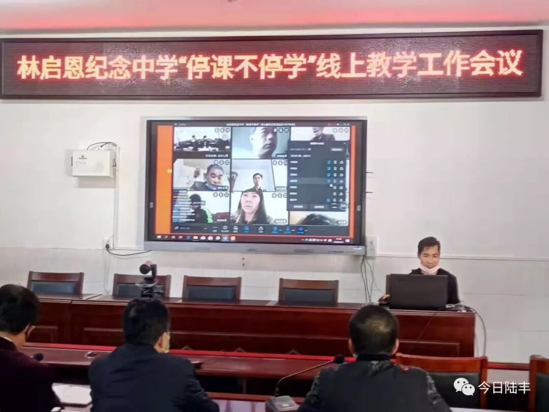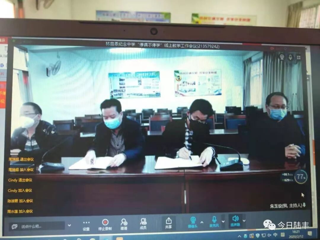 为贯彻落实《广东省教育厅防控新型冠状病毒感染的肺炎疫情工作领导小组关于加强疫情防控期间中小学教育教学管理工作的通知》(粤教防组[2020]5号)文件精神,最大限度减少疫情对学校教育教学的影响,2月12日下午,陆丰市林启恩纪念中学利用视频会议直播平台召开“停课不停学”线上教学工作视频会议,布置疫情防控期间有关教学工作。