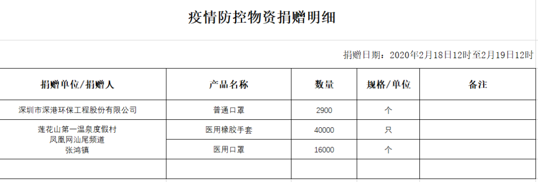 海丰县新型冠状病毒感染的肺炎疫情防控指挥部接受物资明细情况: